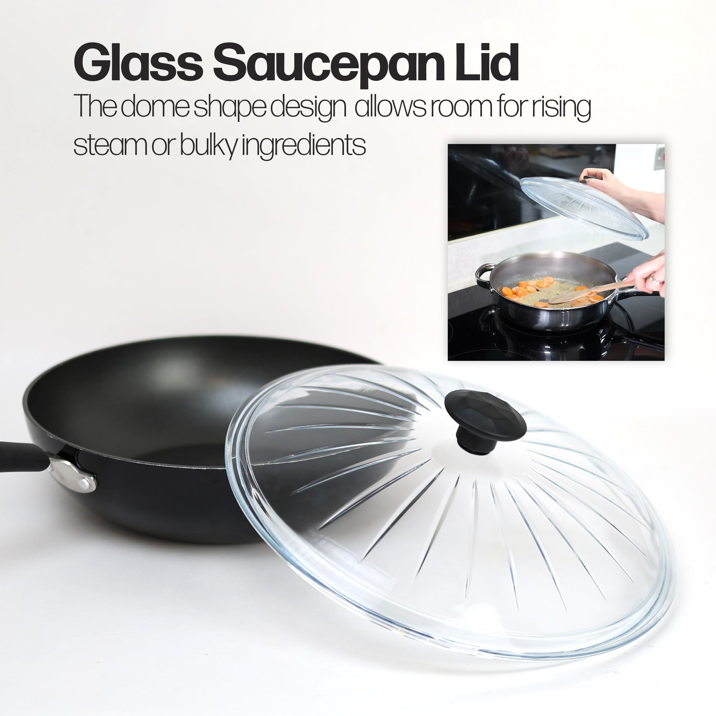 LWS Glass Pan Lid For Saucepan Pots, Multi-use Stockpots Lid With Strong Handle, Design To Fit Casseroles Pan, Compatible Lids Cover For Sauté Pans, Pots, And Saucepans (20cm)